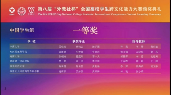 此次海南大学派出的三位选手包括2023级英语专业张朝政、2024级俄语专业曹庭瑄、2024级思想政治教育专业邓一凡。在外国语学院郭锦萍、李芬和毛春洲三位指导教师的悉心指导下,团队成员深入田野调查,大量查阅资料,进行了长达数月的精心准备与刻苦训练。最终凭借流利的英语语言表达、深入的案例分析、得体的跨文化沟通策略以及对海南文化国际传播路径的创新思考,赢得了评委们的高度认可,充分展现了海大学子扎实的专业功底、开阔的国际视野、坚定的文化自信和优秀的跨文化能力,在全国总决赛的舞台上展示出海南大学师生携手共建海南自贸港的昂扬风貌。