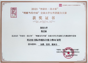 经过多轮比赛,海南大学获得英语组国际传播综合能力赛项国赛银奖4项、铜奖2项,英语组笔译赛项国赛铜奖2项,英语组短视频赛项国赛银奖1项,日语组赛项国赛铜奖3项,俄语组赛项国赛铜奖2项。在备赛过程中,外国语学院坚持以赛促学、以赛促教,组建国际传播综合能力、口笔译、短视频等多个辅导小组,组织优势师资力量,有针对性开展培训,助力学生成长。
