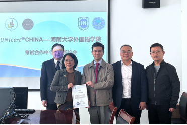 2025年12月29日上午,德国大学官方外语教育教学及欧盟大学外语考试工作委员会常务理事刘跃挺教授,UNIcert®CHINA学术委员会常务理事、北京大学长聘副教授马剑一行莅临海南大学外国语学院进行交流访问。期间,双方共同签署了关于设立“UNIcert®China—海南大学考试合作中心”的合作协议。