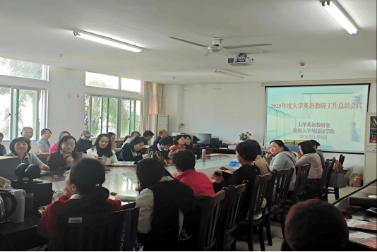 2026年1月9日,海南大学外国语学院大学英语教研室在社科楼C415召开2025年秋季学期期末工作会议暨年度教研工作总结会议。外国语学院副院长王勇主持会议,大学英语教研室全体教师参加会议。