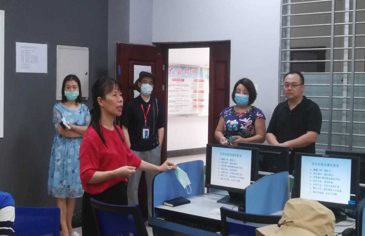 2020年5月8日下午,外国语学院召开2020年春季学期学生返校疫情防控工作部署会并举行实地演练。活动在十号教学楼语言实验室举行,学院领导班子、全体行政人员、学工办及实验室教辅人员参加。