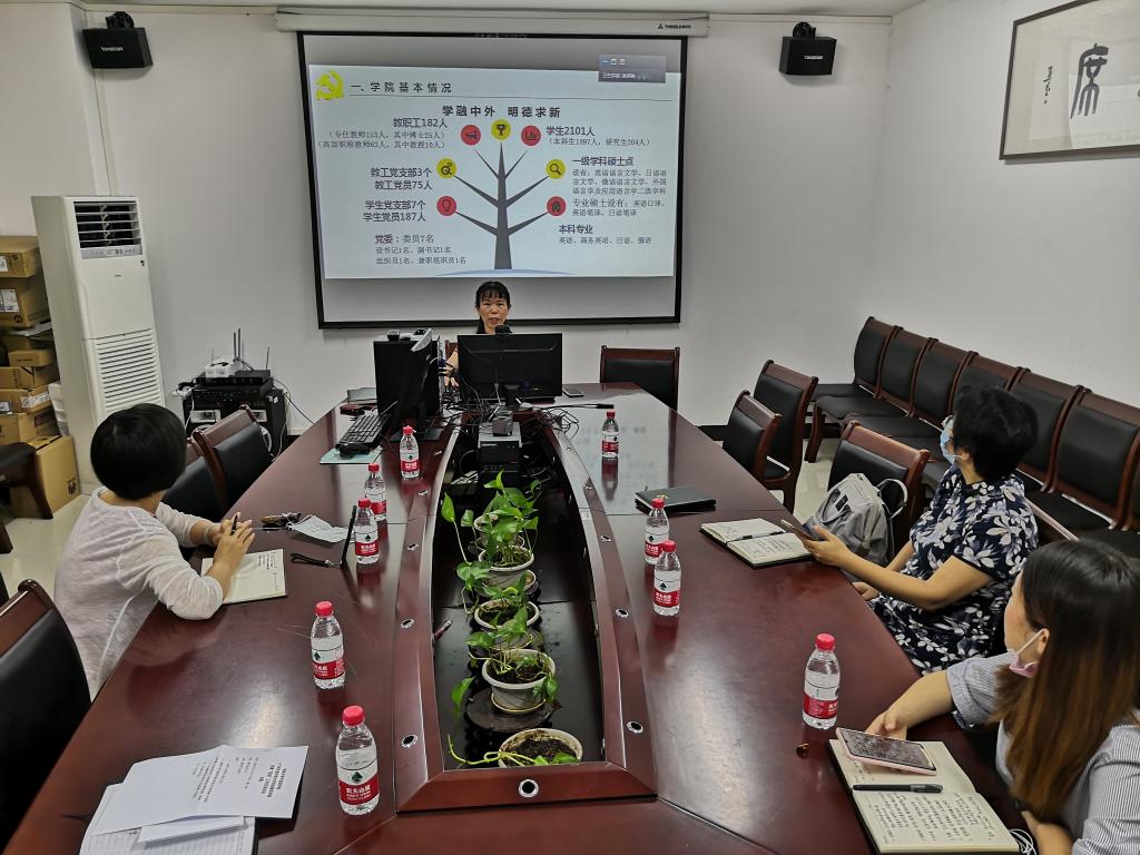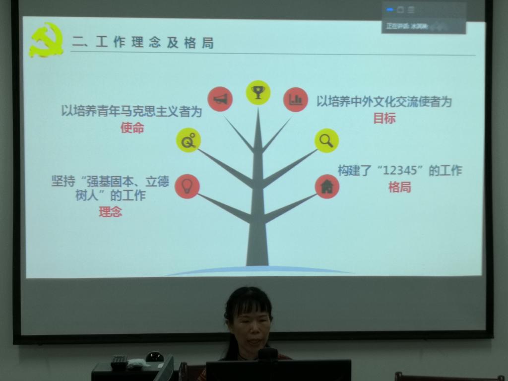 金山介绍了海南大学外国语学院的基本情况,分享了教学、科研、新冠肺炎疫情防控和迎接学生返校工作中的涌现出的先进党员的优秀事迹。